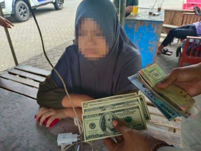 Dari hasil pemeriksaan kepada terduga pelaku, petugas mengamankan sejumlah barang bukti. Di antaranya, tas warna biru, sejumlah bendel uang tunai rupiah, puluhan lembar dolar Amerika dan mata uang asing serta sebuah kotak berisi dua buah cincin emas.
