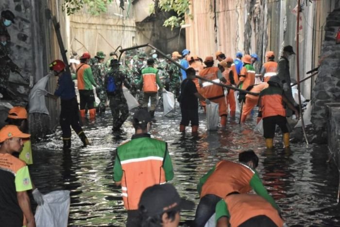 Untuk di Jakarta hari ini, diturunkan sekitar 600 personel gabungan dari TNI, Polri, Satpol PP, dan sejumlah organisasi relawan untuk membersihkan Sungai Krukut yang berada di wilayah Kodim 0501/JP dan Pasar Tanah Abang.