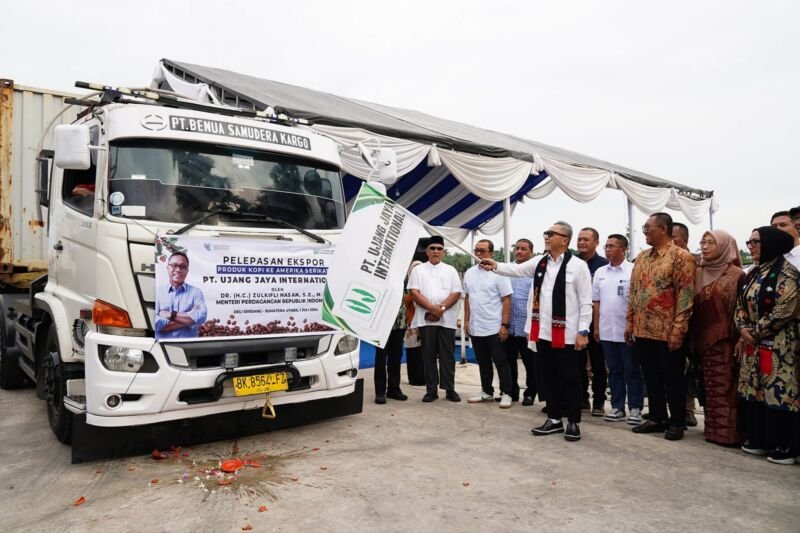 BicaraIndonesia.id, Deli Serdang – Menteri Perdagangan (Mendag) Zulkifli Hasan, melepas ekspor kopi green bean produksi PT Ujang Jaya International sebanyak 10 kontainer senilai USD 1,48 juta ke Amerika Serikat (AS).