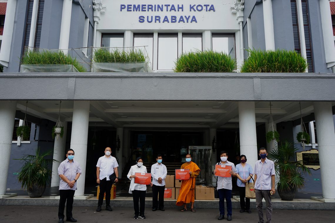 Bicaraindonesia.id – Keluarga Buddhayana Indonesia (KBI) Jawa Timur mendonasikan ribuan alat pelindung diri (APD) ke Pemerintah Kota (Pemkot) Surabaya, Selasa (28/4/2020). Bantuan tersebut, diterima langsung oleh Wali Kota Surabaya Tri Rismaharini di halaman Balai Kota Surabaya.