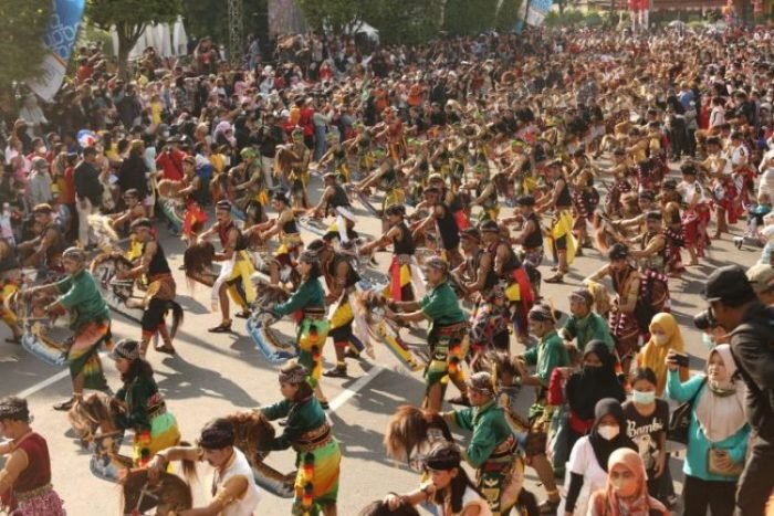 Sebanyak 1.050 seniman jaranan dan pengrawit datang dari berbagai desa di Jawa Tengah. Mereka tampil memesona dan berhasil menyihir warga yang asyik mengikuti Car Free Day (CFD) di kawasan itu.